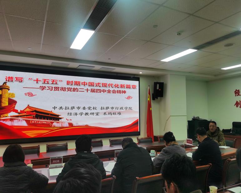 为深入学习和领会习近平总书记在党的二十届四中全会上的重要讲话精神,全面贯彻执行全会《建议》的部署要求。为确保党中央关于“十五五”时期经济社会发展的战略规划和顶层设计在经信工作中得到精准落实。11月14日上午,拉萨市经信局特邀党校讲师米玛旺堆以“谱写‘十五五’时期中国式现代化新篇章”为题进行专题授课,局全体在家班子成员和干部职工参加。