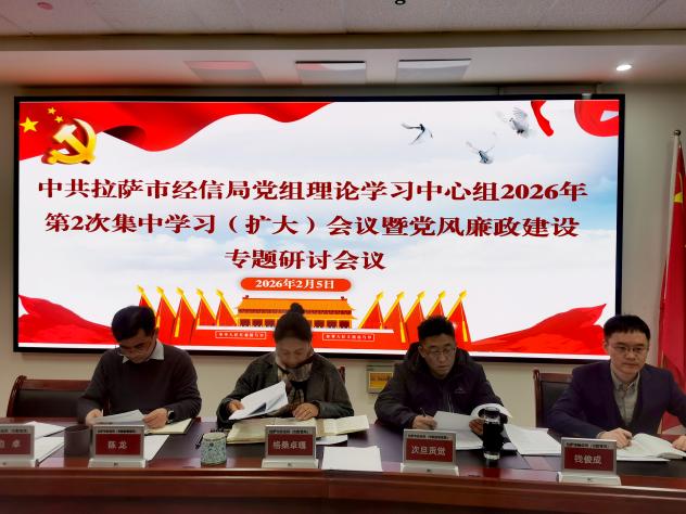 为深入学习贯彻习近平总书记关于党风廉政建设的重要论述,全面贯彻落实区、市第十届纪委第六次全会部署要求,扎实推进全面从严治党向纵深发展。2月5日上午,局党组书记格桑卓嘎同志主持召开以“全面从严治党,强化党风廉政建设”为主题的理论中心组专题学习研讨会,把握新时代新征程党风廉政建设的新任务新要求,增强政治自觉、思想自觉和行动自觉,推动廉洁从政、廉洁用权、廉洁修身走深走实,为经信经济高质量发展营造风清气正的政治生态和干事创业环境。
