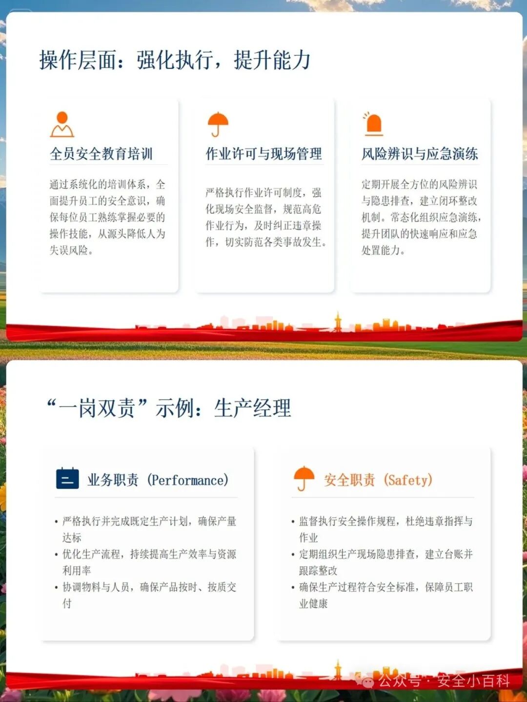 管业务必须管安全,要求各业务部门将安全生产嵌入业务工作的各环节、各方面。这一要求纠正了"安全与业务两张皮"的错误倾向,明确了业务部门对本业务领域安全生产的直接责任。