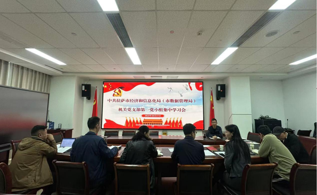 2025年10月17日下午,拉萨市经济和信息化局(市数据管理局)机关党支部第一党小组组织召开集中学习会,会议由第一党小组组长主持,第一党小组全体在家党员参会。拉萨市经济和信息化局(数据管理局)党组书记、副局长、一级调研员格桑卓嘎以普通党员身份参加第一党小组集中学习会。